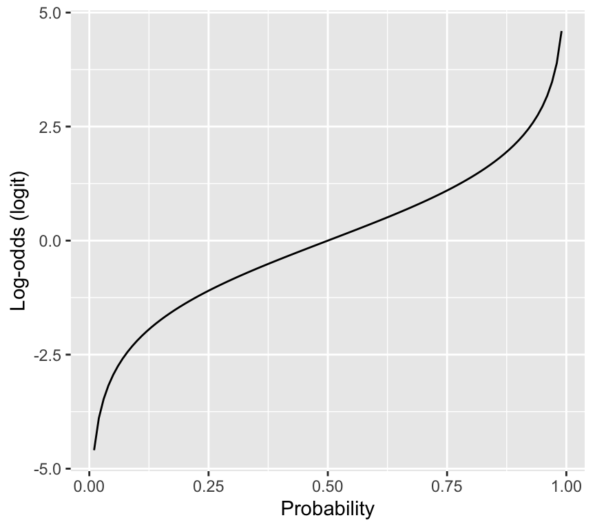 labs(x = "Probability", y = "Log-odds (logit)")